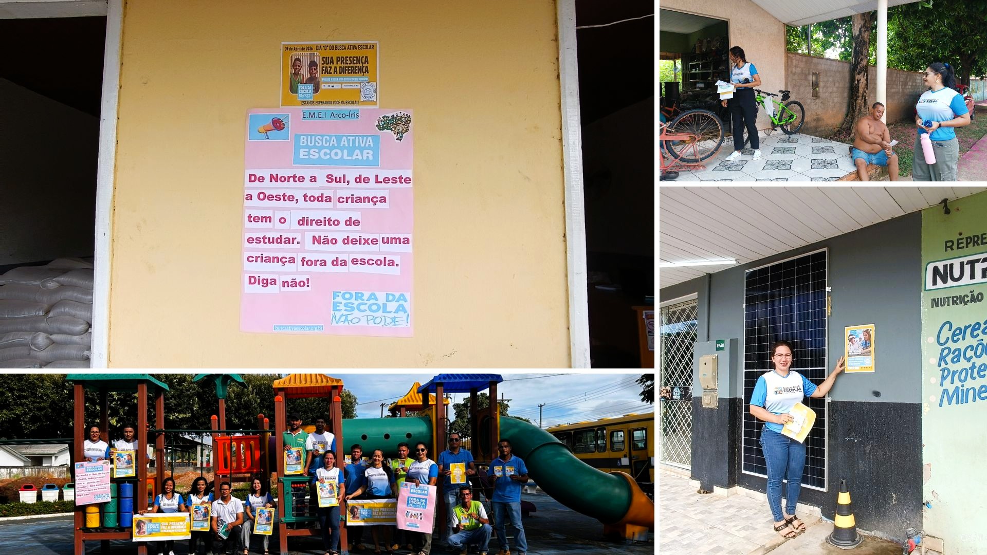 Durante as visitas, foram realizadas Entrega de panfletos informativos com orientações sobre o direito à educação; Diálogo com comerciantes e cidadãos sobre como identificar e alertar casos de crianças e adolescentes fora da escola e Esclarecimentos sobre a Busca Ativa, reforçando que "fora da escola não pode" e que a frequência escolar é fundamental para o desenvolvimento do jovem e o futuro do município.