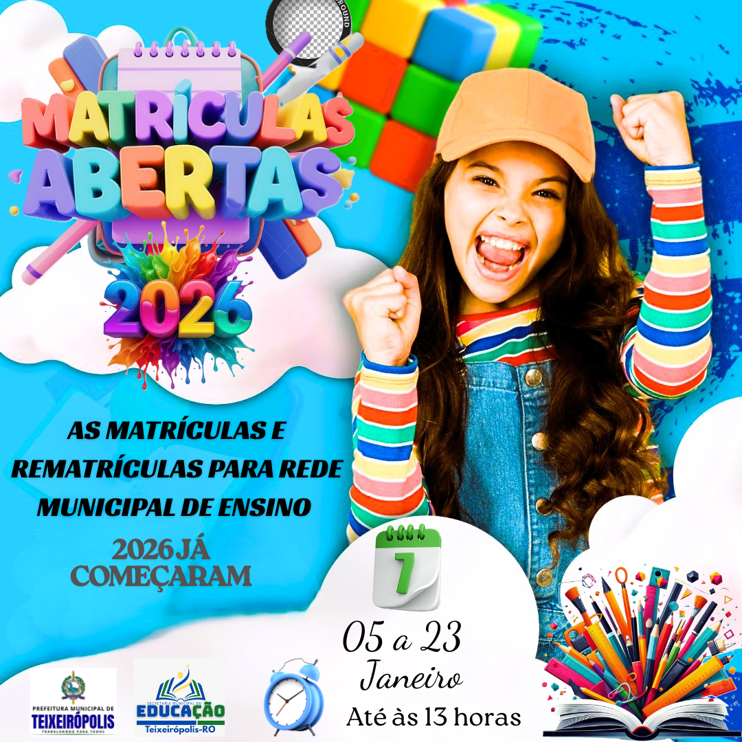 AS MATRÍCULAS E REMATRÍCULAS 2026 PARA REDE MUNICIPAL DE ENSINO ESTÃO ABERTAS