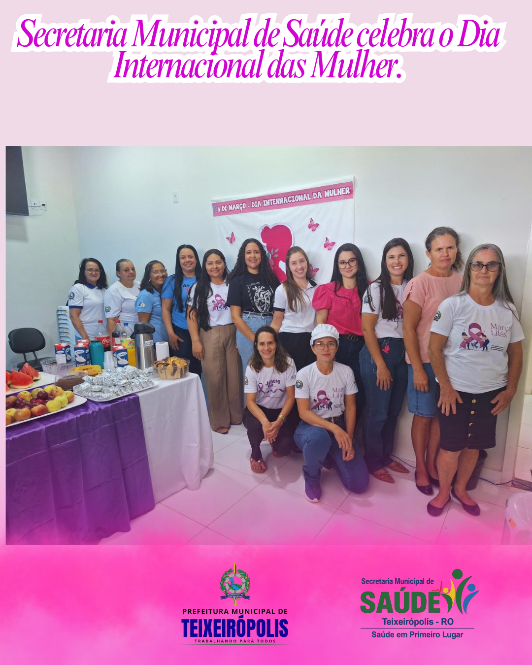 Em celebração ao Dia Internacional da Mulher, a Secretaria Municipal de Saúde de Teixeirópolis realizou um momento especial de confraternização com todas as mulheres que fazem parte da saúde municipal.