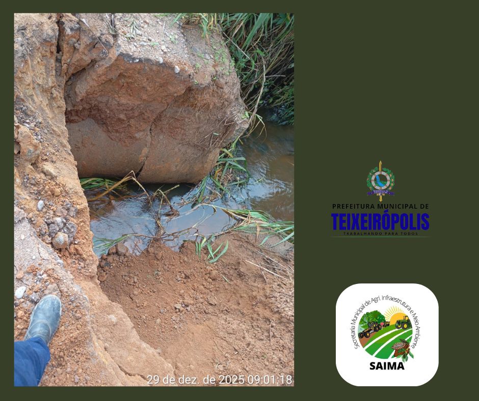 A Prefeitura Municipal de Teixeirópolis informa que foi realizado o conserto do bueiro localizado na Linha 32, sentido Linha 37, no município de Teixeirópolis, por meio da Secretaria Municipal de Agricultura, Infraestrutura e Meio Ambiente (SAIMA), sob a gestão do prefeito Osmy Toledo, do vice-prefeito Darcy Gomes, com o objetivo de garantir melhores condições de tráfego e segurança aos usuários da via.